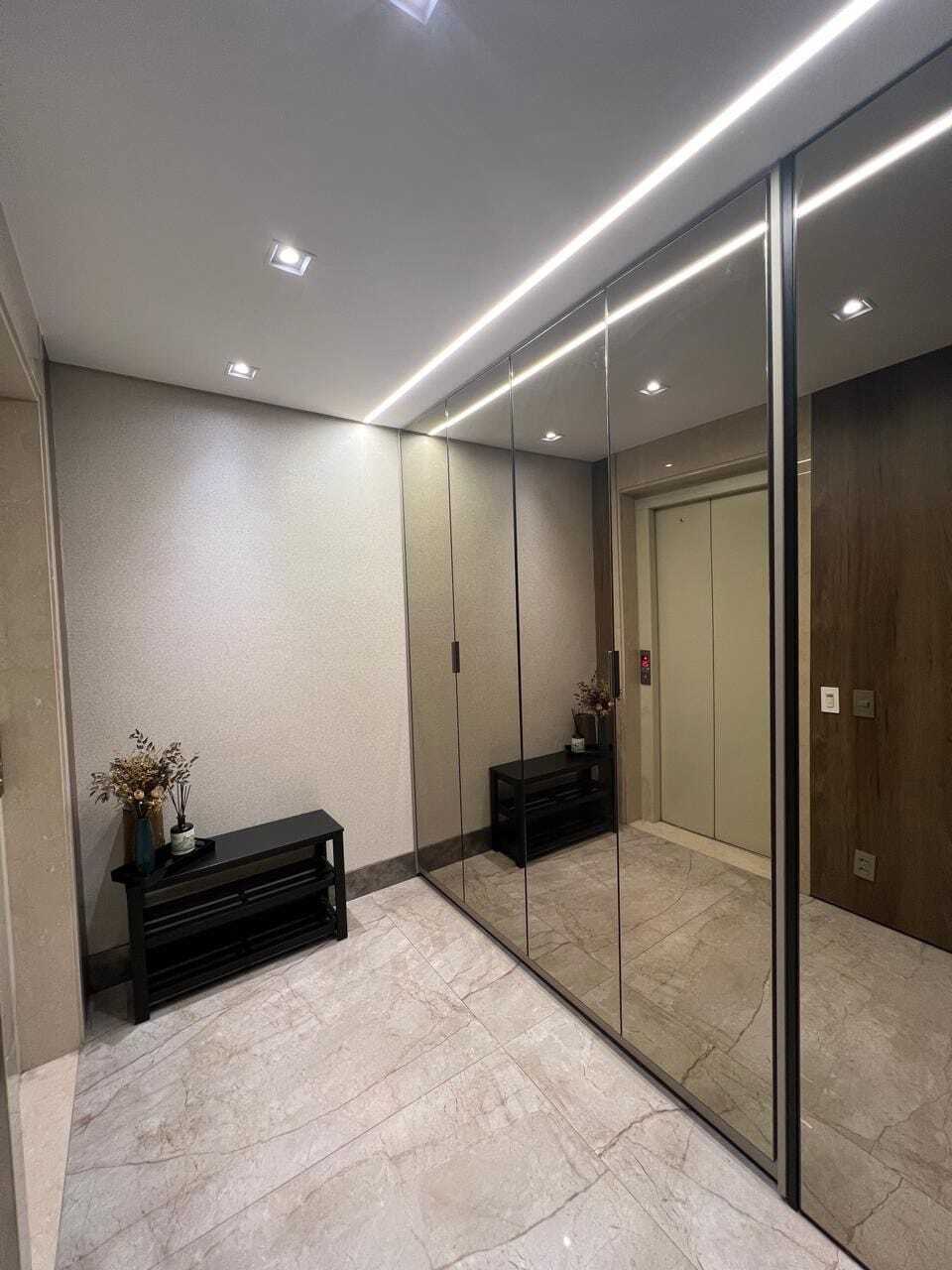 Planejados Eviva, com espelhos, vidros reflecta, aço inox escovado, laca, acabamentos diferenciados.