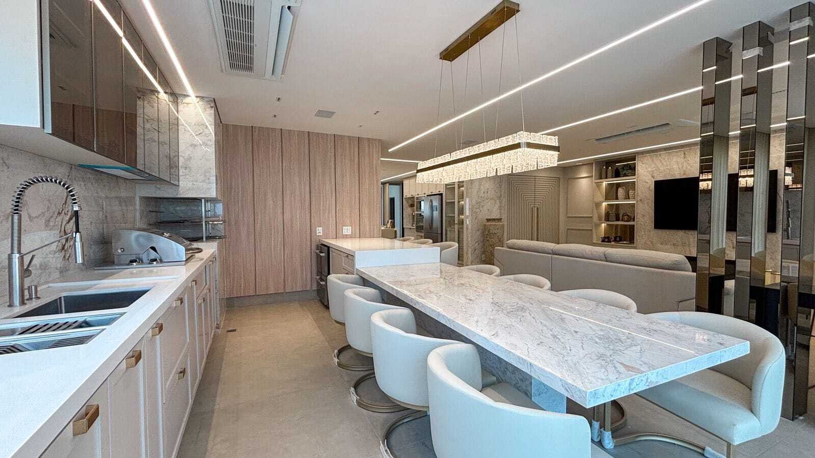 Apartamento alto padrão à venda em Londrina, na Gleba Palhano, todo mobiliado e decorado com móveis soltos e eletrodomésticos de alto padrão, nunca habitado, conta com um espaço generoso com 207m² de área útil. Com três suítes, e cinco banheiros, oferece conforto e privacidade para toda a família. Além disso, possui sala 2 ambientes e sacada gourmet integrada, proporcionando espaços amplos e versáteis para diversas atividades do dia a dia.