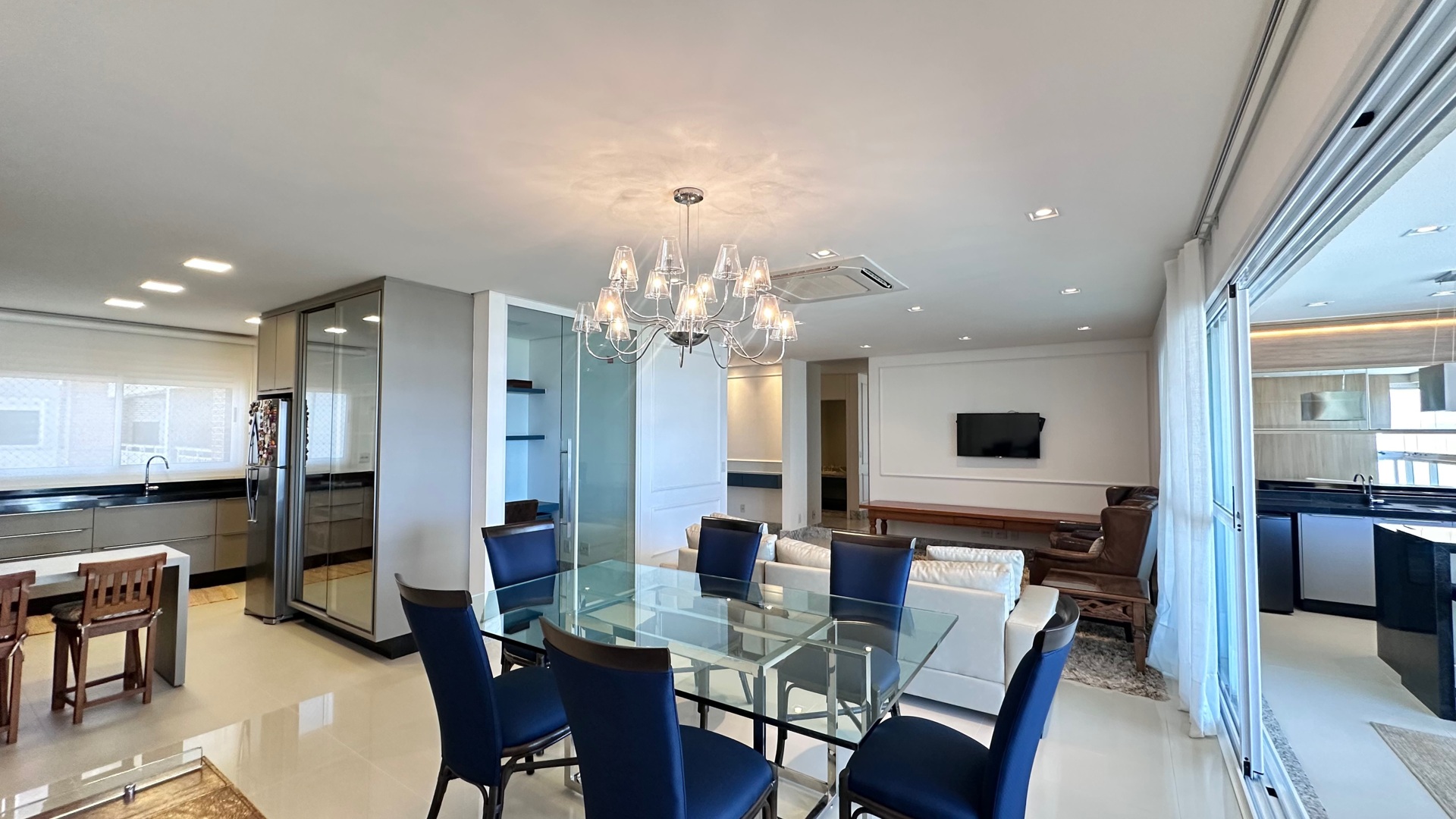 Apartamento com 03 suítes, sendo 01 suíte master, sala com 2 ambientes, armários planejados, churrasqueira na sacada, screen glass, ar condicionado e escritório. Apartamento com fino acabamento e decorado.