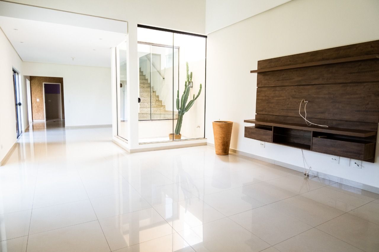 3 suítes completas (todas com ar-condicionado e armários planejados), sendo a suíte master com sacada exclusiva, proporcionando um espaço de descanso sofisticado. Sala ampla com 2 ambientes integrados, perfeita para reunir família e amigos. Sala de TV no piso superior, trazendo mais aconchego e privacidade. 5 banheiros ao todo, garantindo praticidade no dia a dia. 4 vagas de garagem. Jardim encantador com espaço para lazer e momentos ao ar livre.