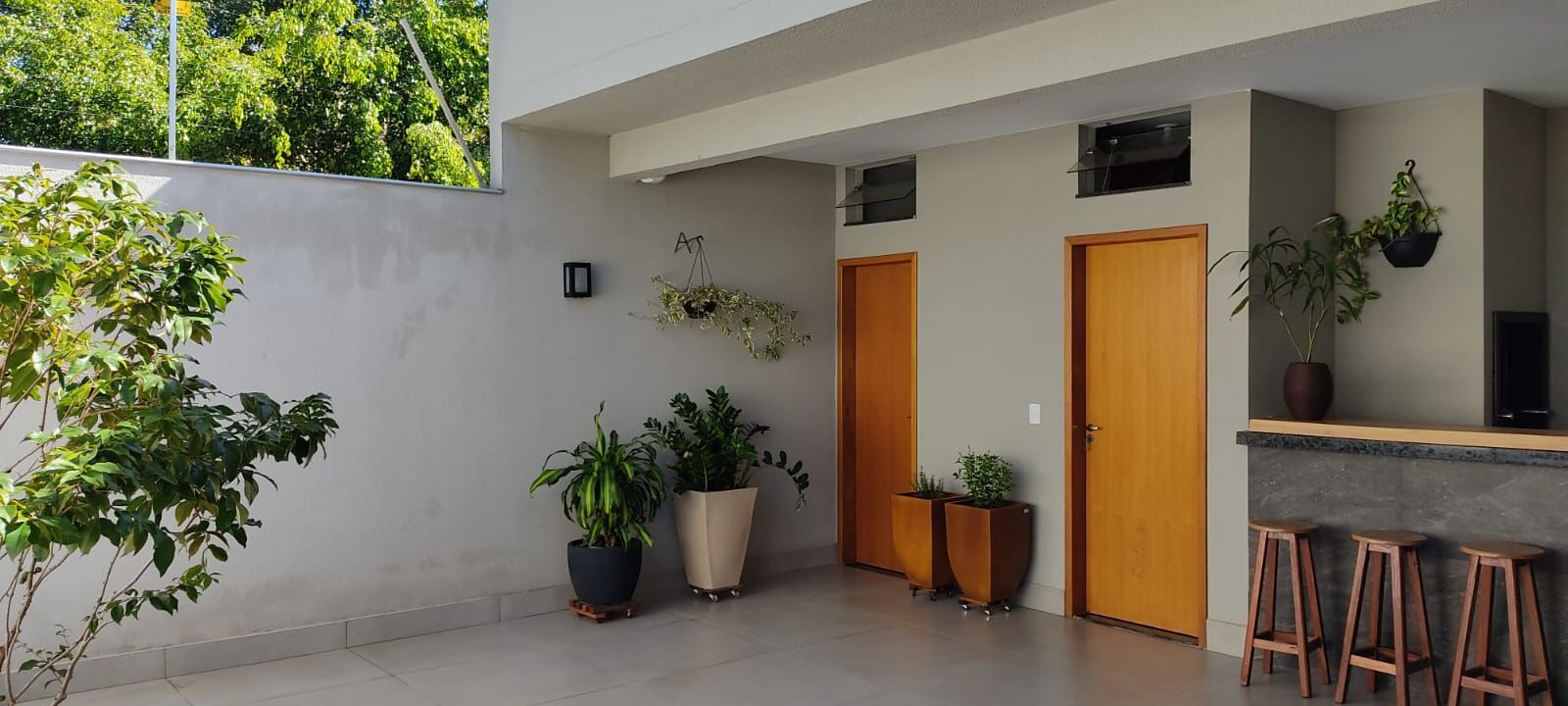 • Churrasqueira com balcão e pia.