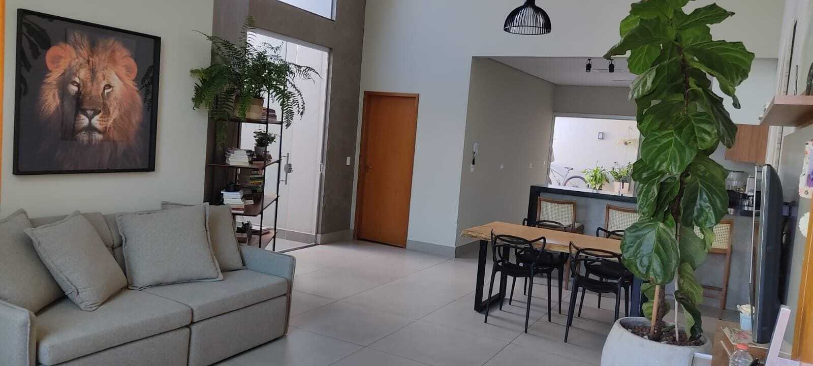 Casa térrea 125m², 3 quartos sendo 1 suíte com armários, 3 banheiros, pé direito duplo integrado com a cozinha planejada, ar condicionado 24 mil BTUs na sala, garagem para 3 carros, cerca elétrica e câmeras, muito aconchegante em bairro tranquilo, próximo a natureza. A 3 minutos da Gleba Palhano.