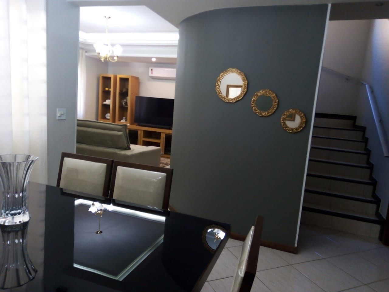Sala de jantar e tv climatizadas para receber os amigos e familiares.