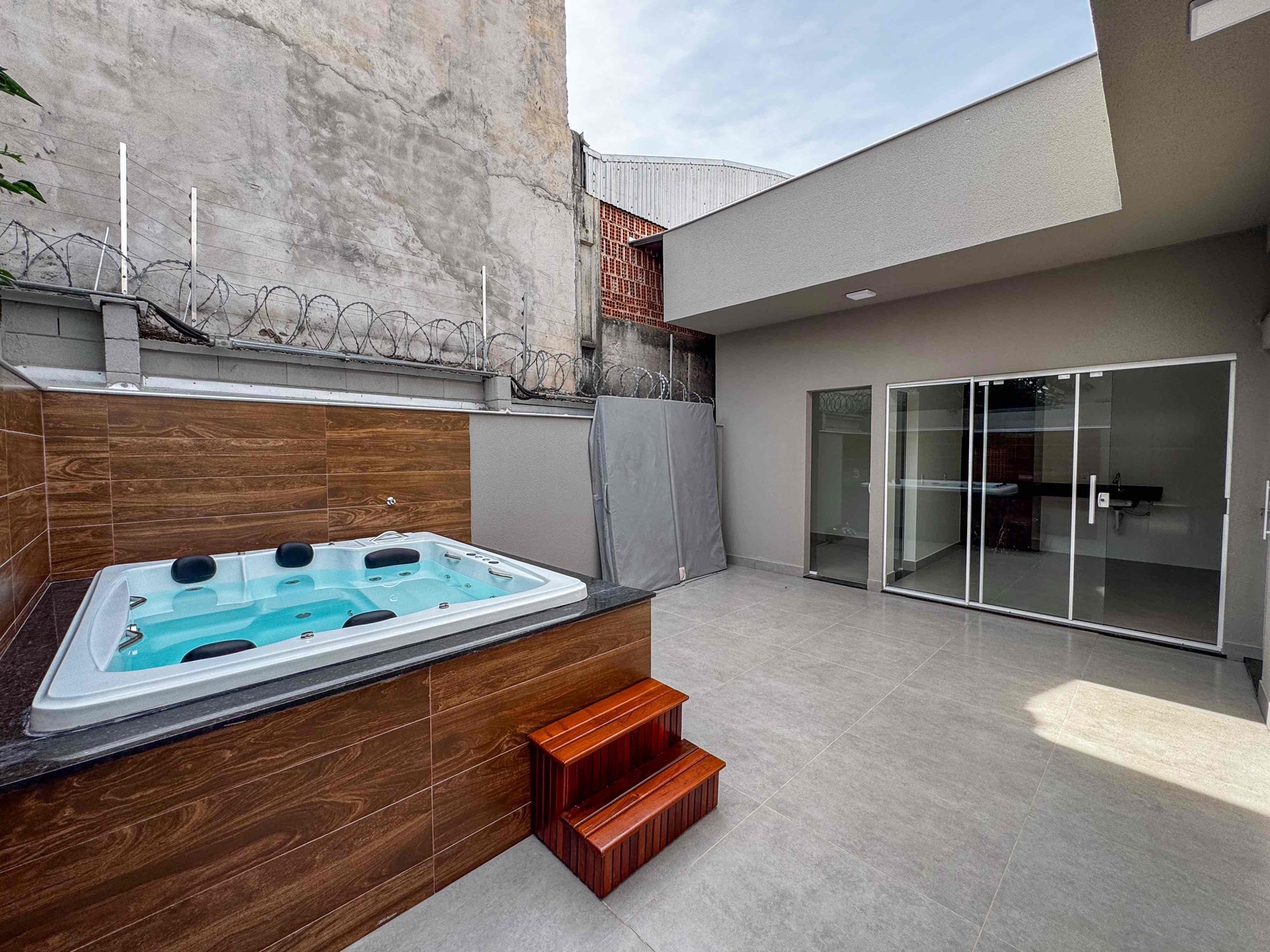 Toda a casa é revestida em porcelanato de alto padrão, unindo sofisticação e praticidade no dia a dia. Nos fundos, um espaço especial de lazer com quintal privativo e jacuzzi aquecida para até 8 pessoas, perfeito para relaxar e receber amigos e família com conforto. A garagem é coberta para 2 carros e a frente da casa conta com um belo paisagismo e jardim.