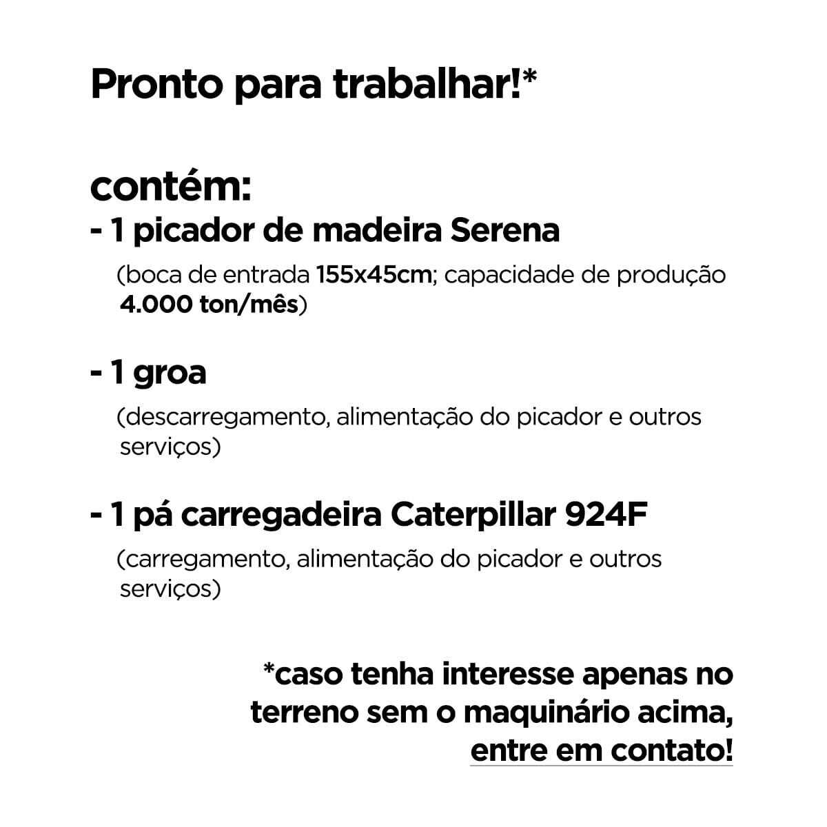 - Picador de madeira Serena (boca 155x45cm; capacidade de produção 4.000 toneladas por mês)
